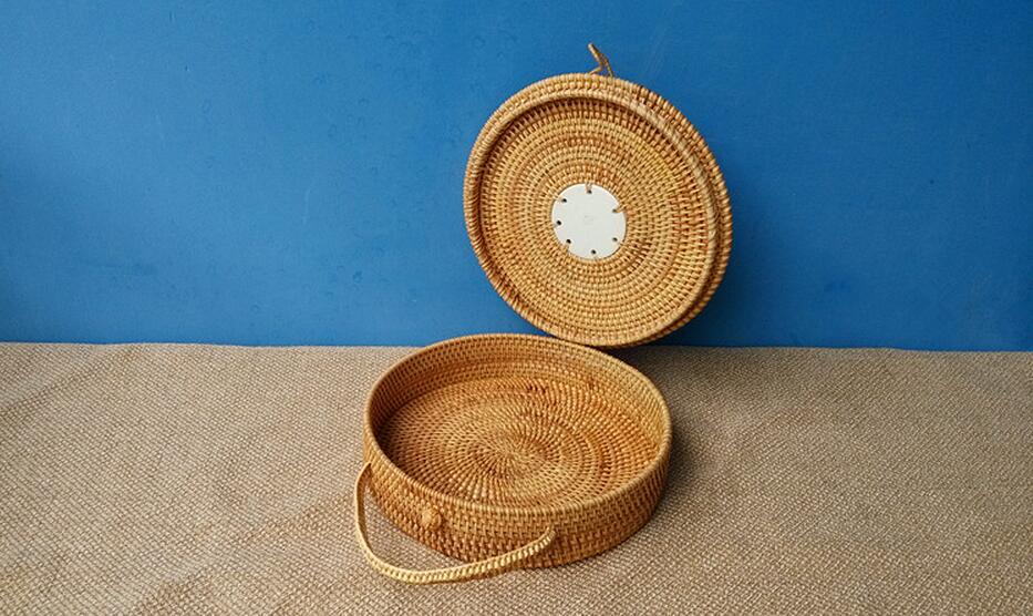 I love this handmade knitted rattan hand bag. Its perfect for travel, the beach and summer vacations. The lid seals with a simple twist.