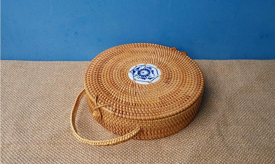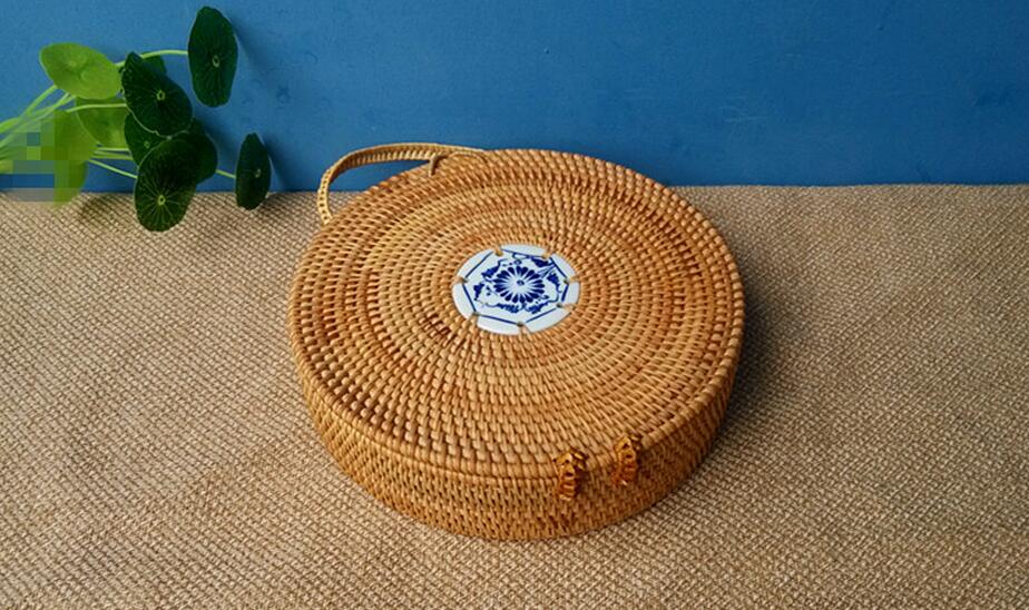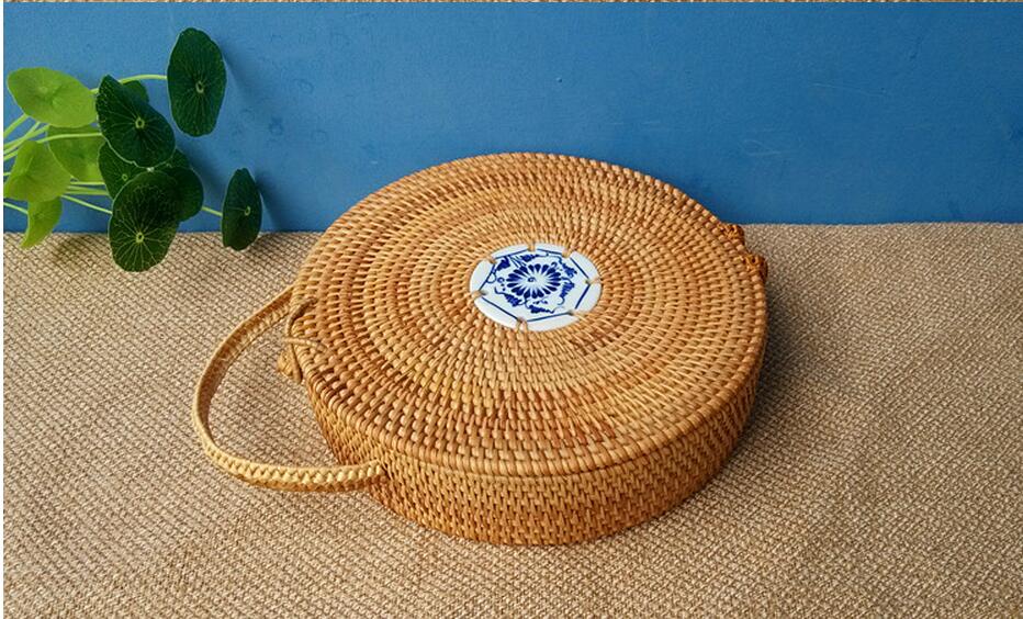 Handmade knitted rattan hand bag